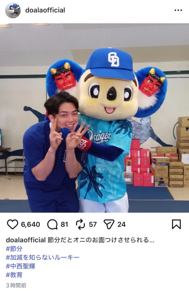 【中日】ドラ1中西聖輝が全力豆まき「スポーツマンとして」ドアラに投げるも…まさかの返り討ち(日刊スポーツ)